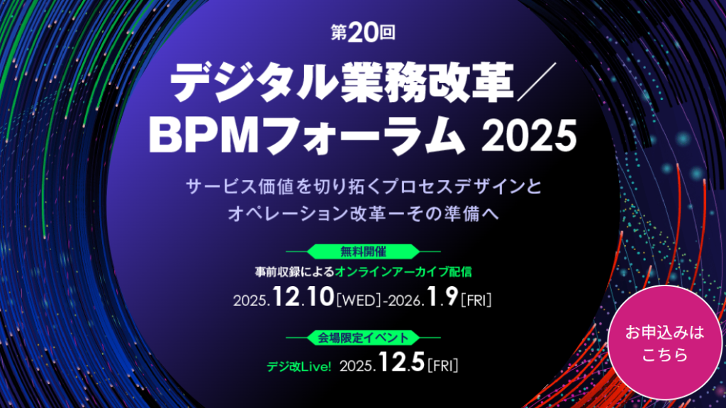 【第20回デジタル業務改革/BPMフォーラム2025】お申し込みはこちら ※外部サイトにリンクします