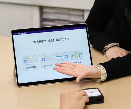 このたび千葉興業銀行は、本ソリューションを導入し、店頭での公的個人認証サービス(JPKI)による本人確認を開始しました。これにより、セキュリティの強化を図るとともに、読み取ったデータや問い合わせ結果を勘定系システムに連携することで、口座開設や各種手続きを効率化し、窓口業務の負担を軽減します。